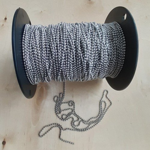 Tilt control chain for Vertical Blinds available in Zinc plated metal or Plastic bead in Black or White with No.6 ball. This item is available to buy in increments of 1 linear metre length and will require chain ball link connector to close the loop which are available and sold separately.