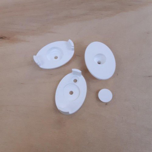 4 Piece double route Child safety device for use with Vertical blinds to carry and retain the draw cord and tilt chain, wall mounted